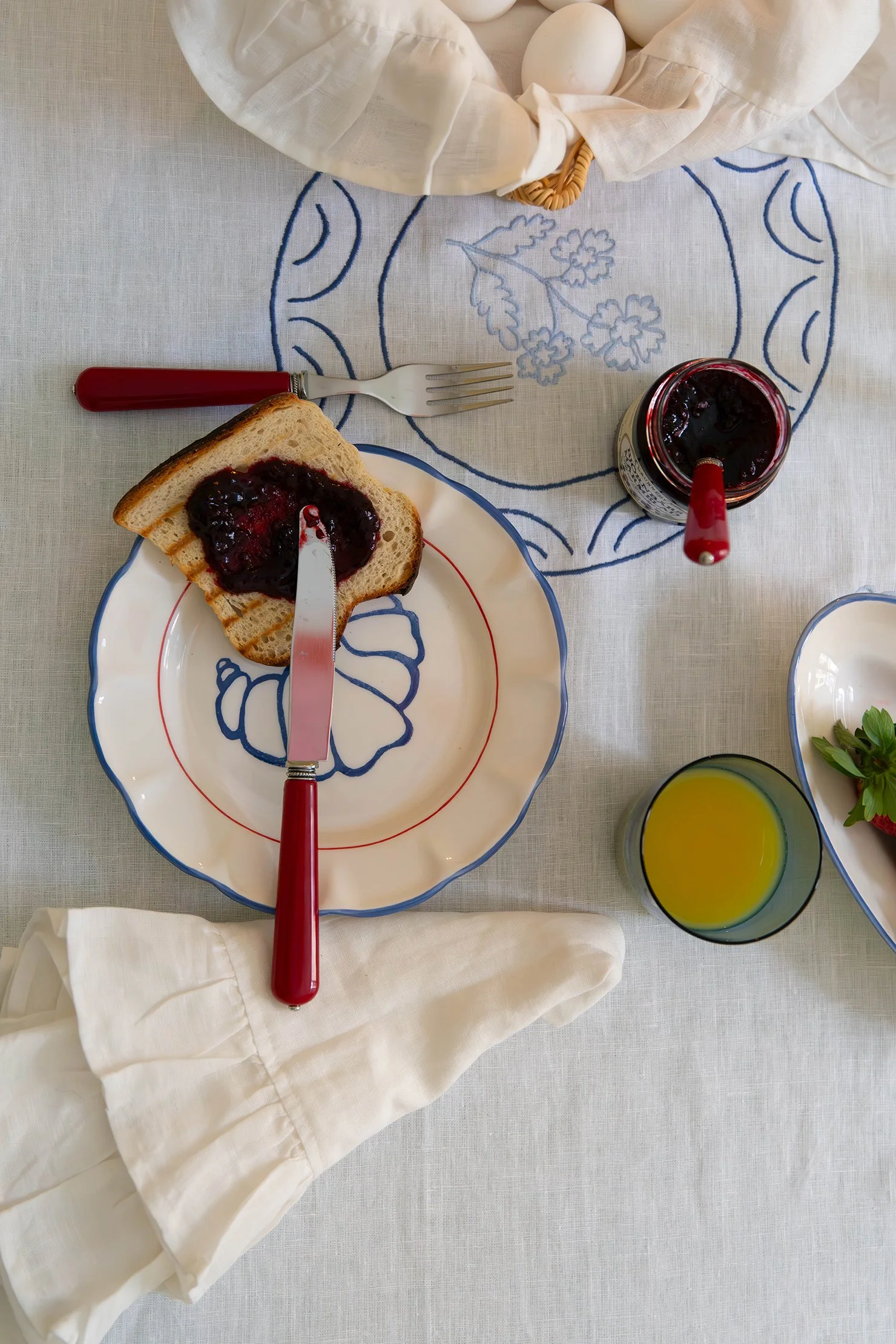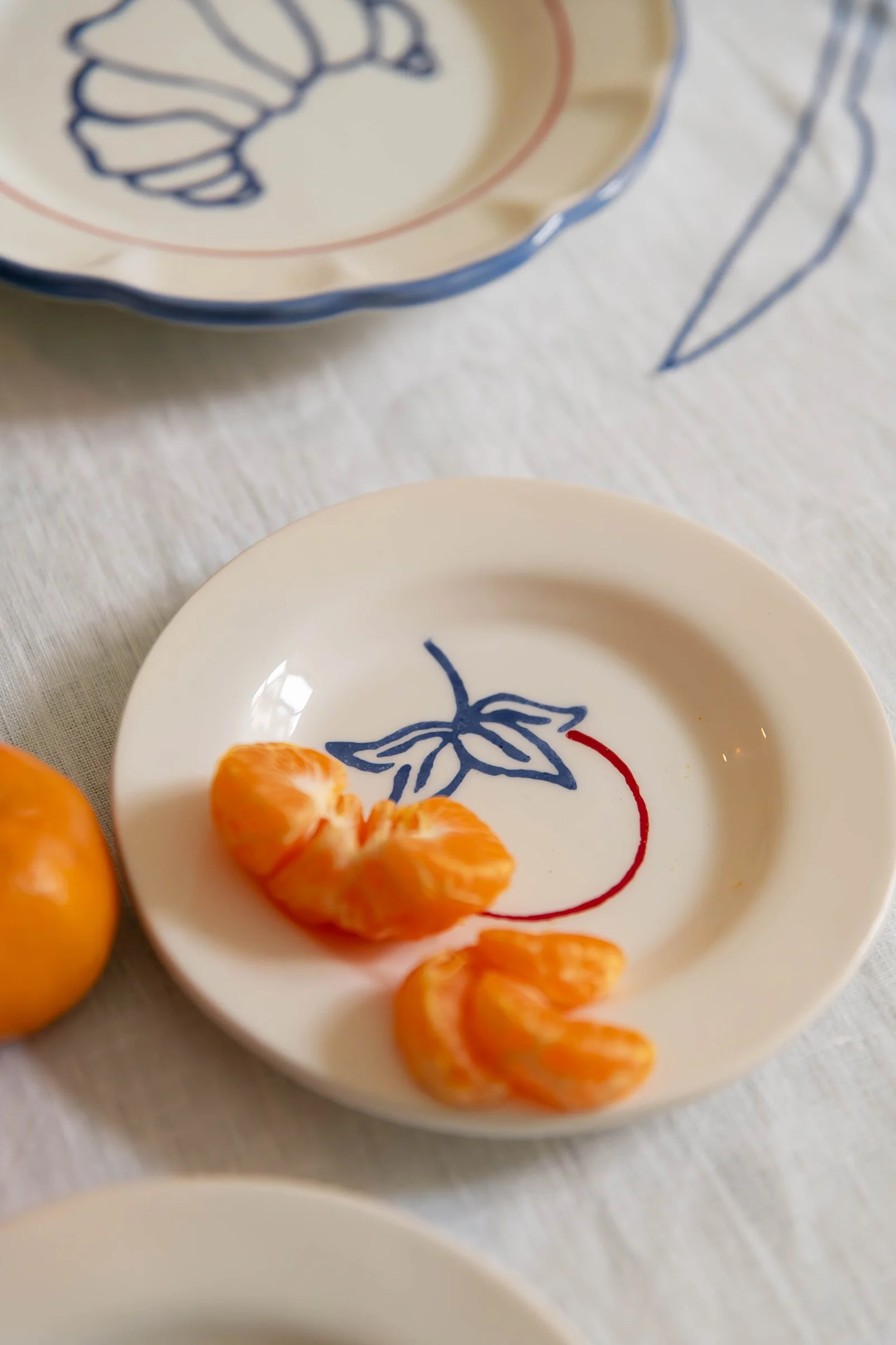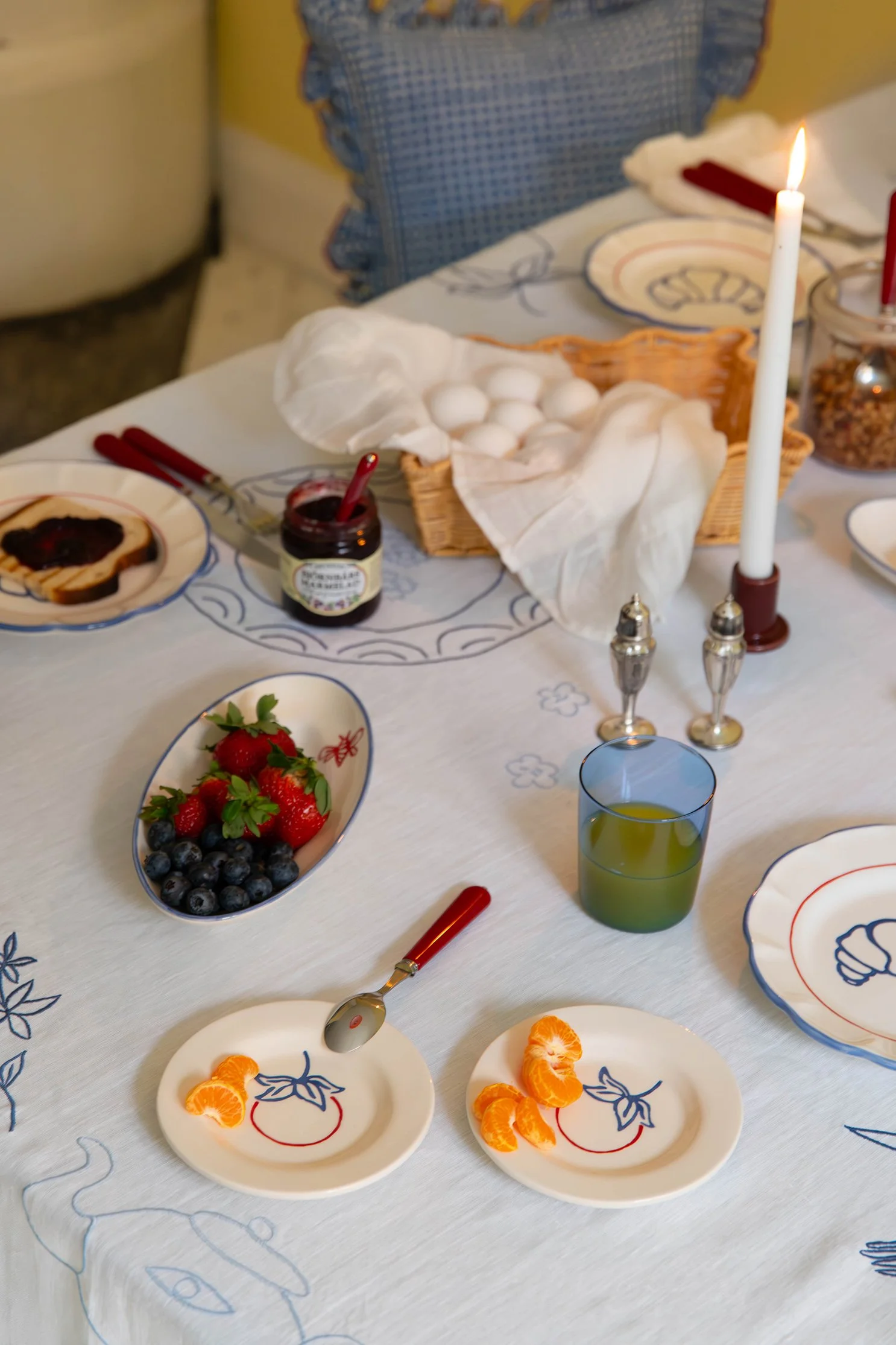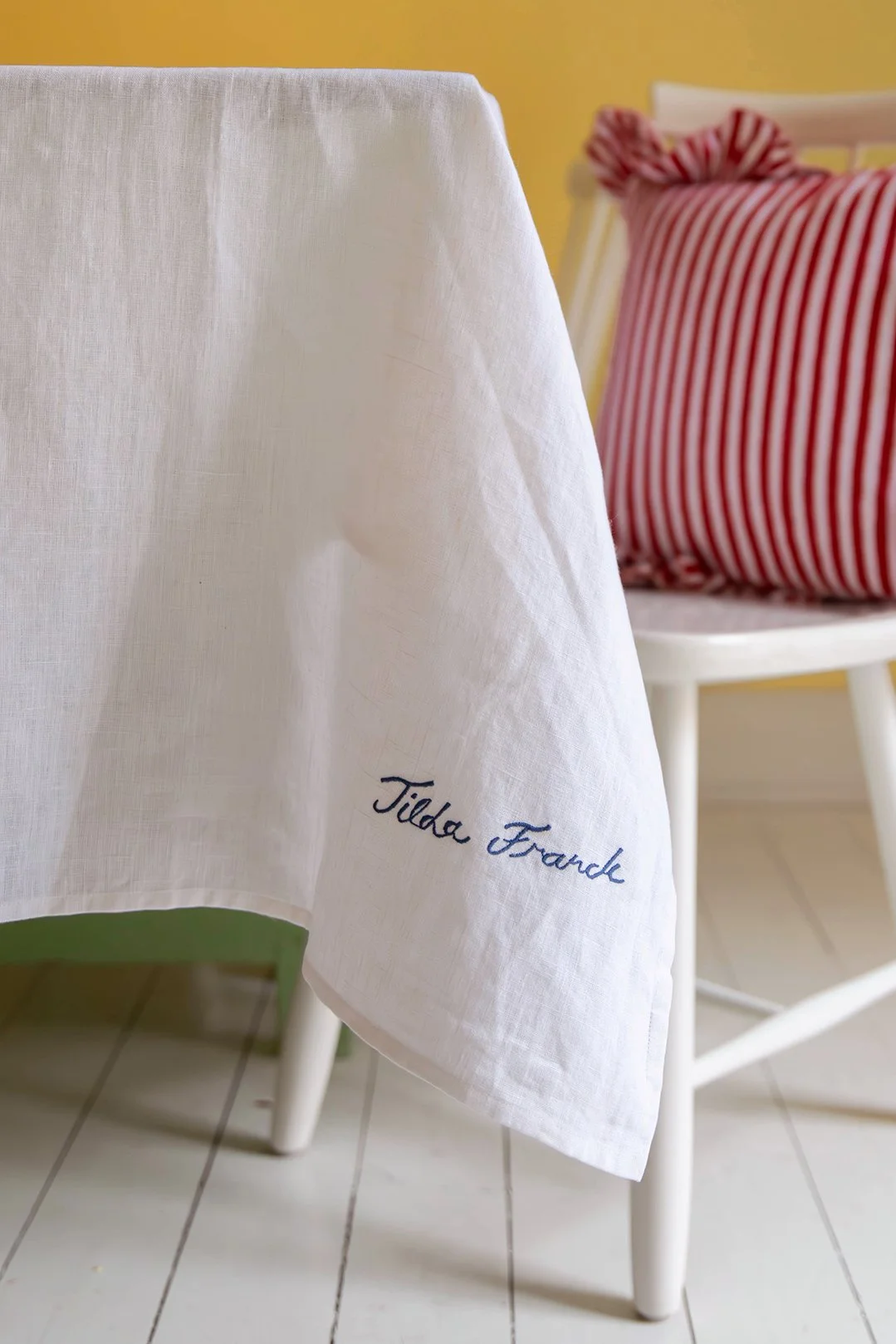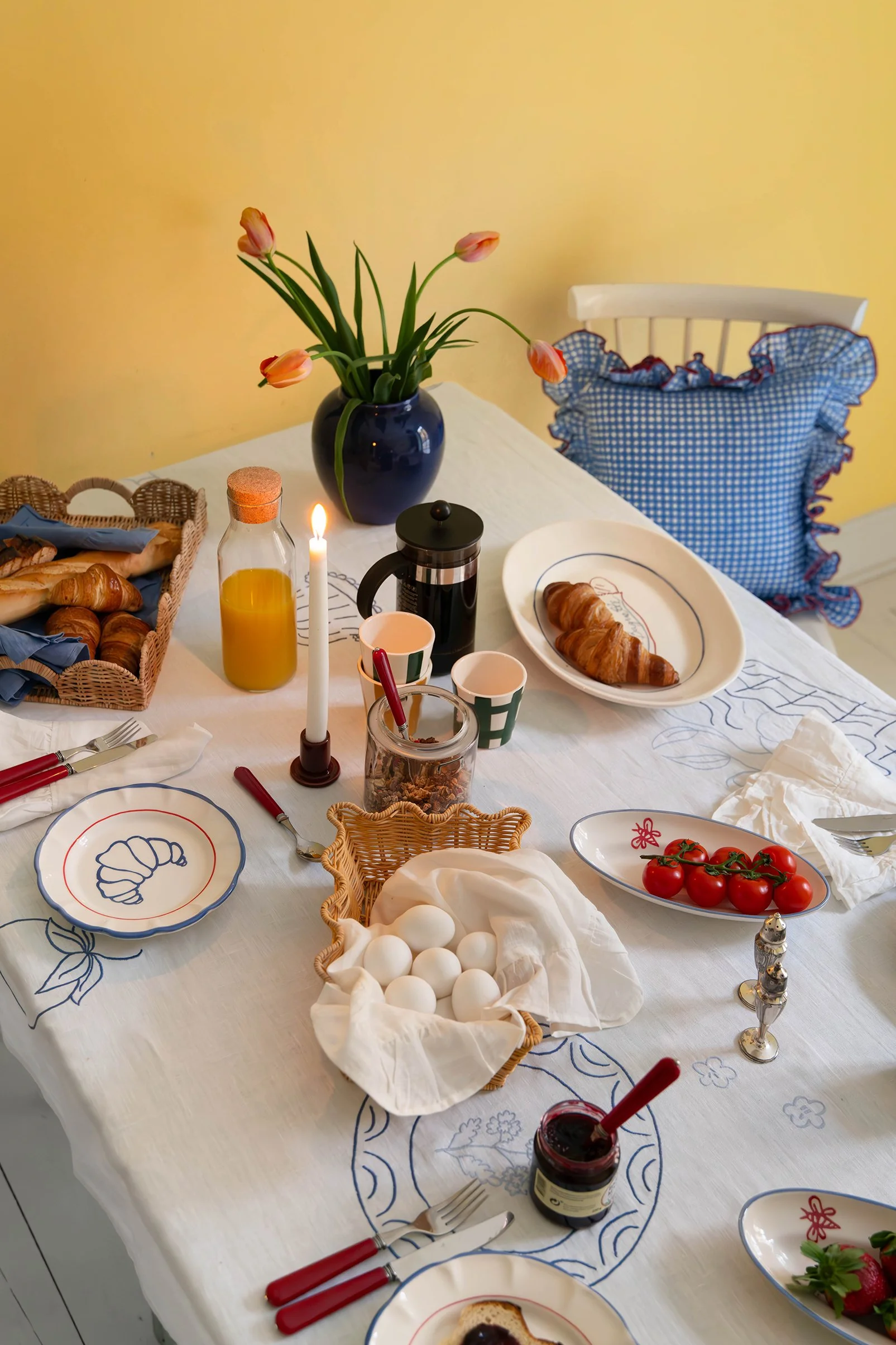 “Vår nya Picnic-kollektion markerar ett speciellt samarbete med den svenska illustratören Tilda Franck. Serien, som innehåller handmålad keramik och broderade textil, kombinerar Tildas lekfulla motiv med gediget hantverk. Designad för att enkelt kunna blandas med befintliga duknigsserien, tillför serien en lekfull och fantasifull touch till sommarens dukningar.”