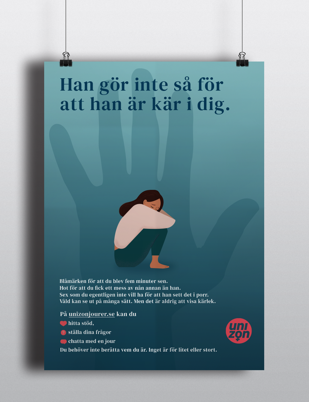 Mäns våld mot kvinnor är ett problem i alla samhällen. Unizon arbetar för att alla våldsutsatta kvinnor och barn, samt utsatta unga, ska erbjudas stöd och skydd, oavsett livssituation och bakgrund.